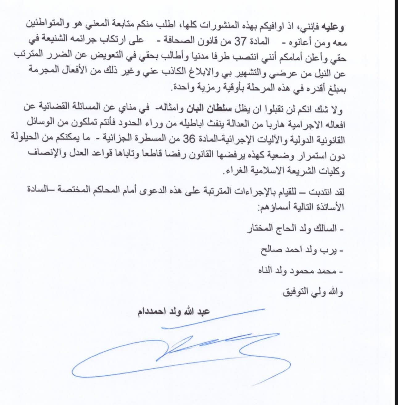 ول احمد دامو يودع شكاية من المدون سلطان البان لدي وكيل الجمهورية